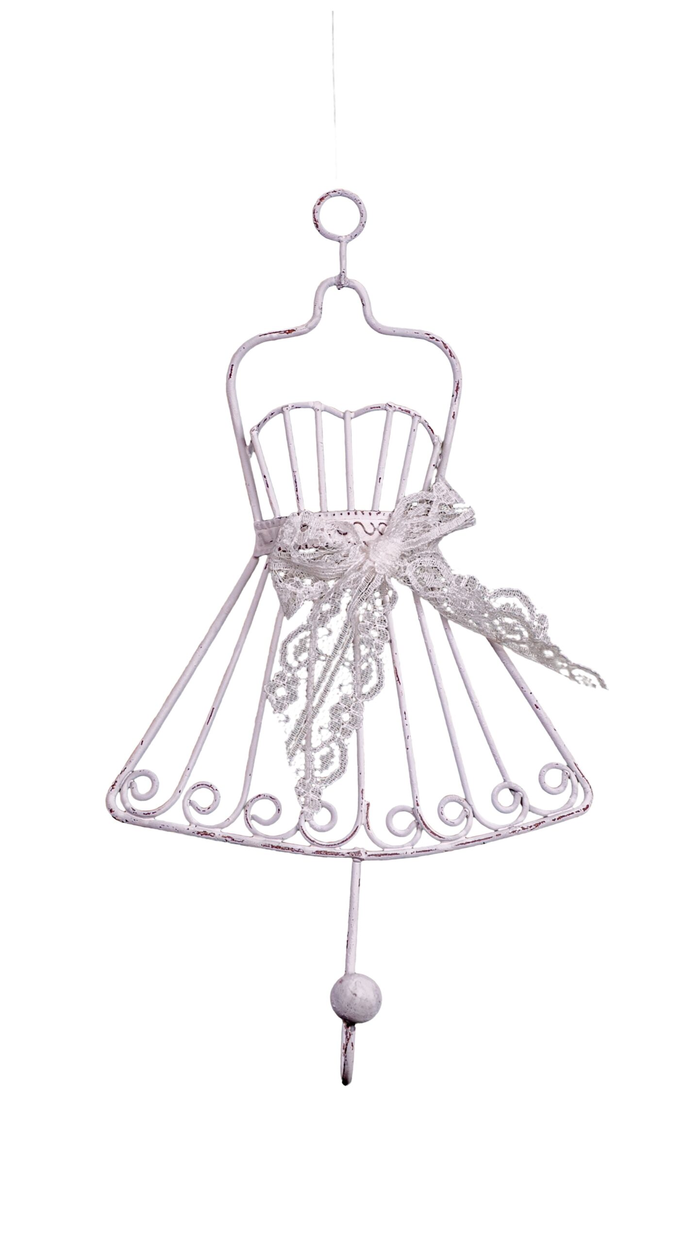 Dieser Wandhaken in Form eines zarten Kleiderständers bringt nostalgischen Charme in dein Zuhause. Mit filigranen Metallverzierungen und einer verspielten Spitzen-Schleife ist er nicht nur praktisch, sondern auch ein dekorativer Blickfang.