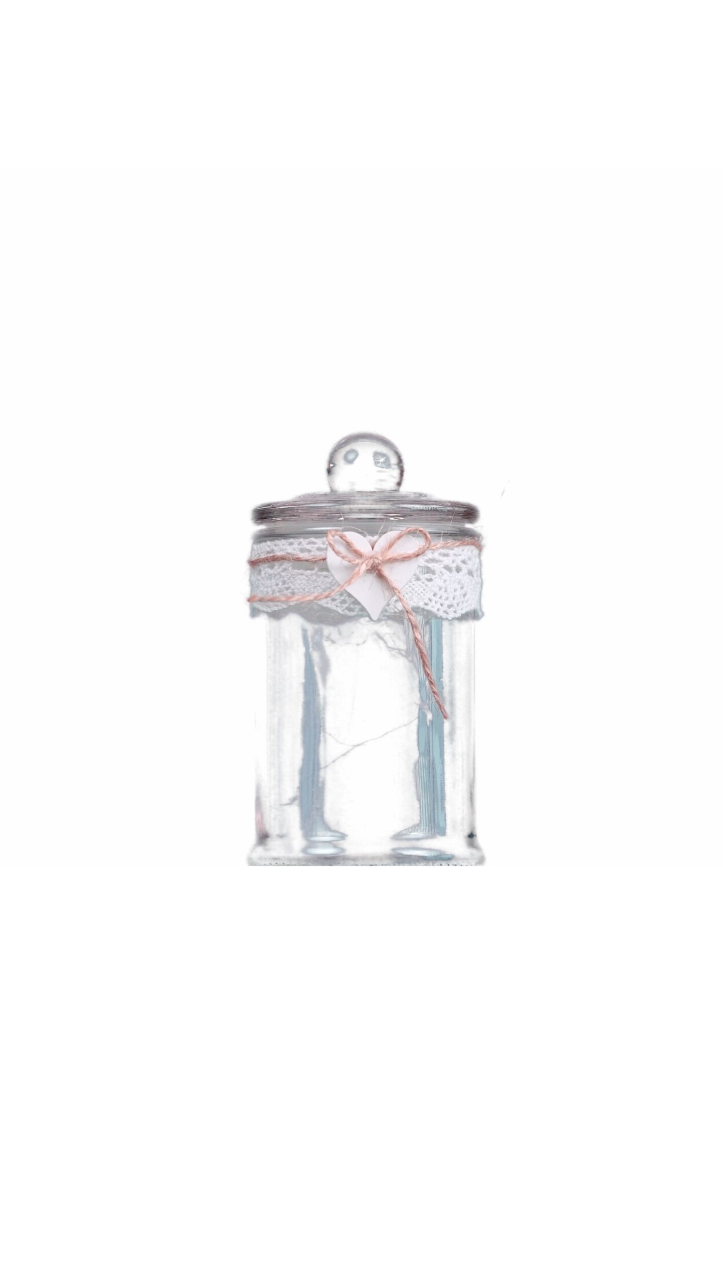 1x Vorratsglas mit Gummiverschluss ausdekoriert mit Spitzenband & Herz (ohne Inhalt)